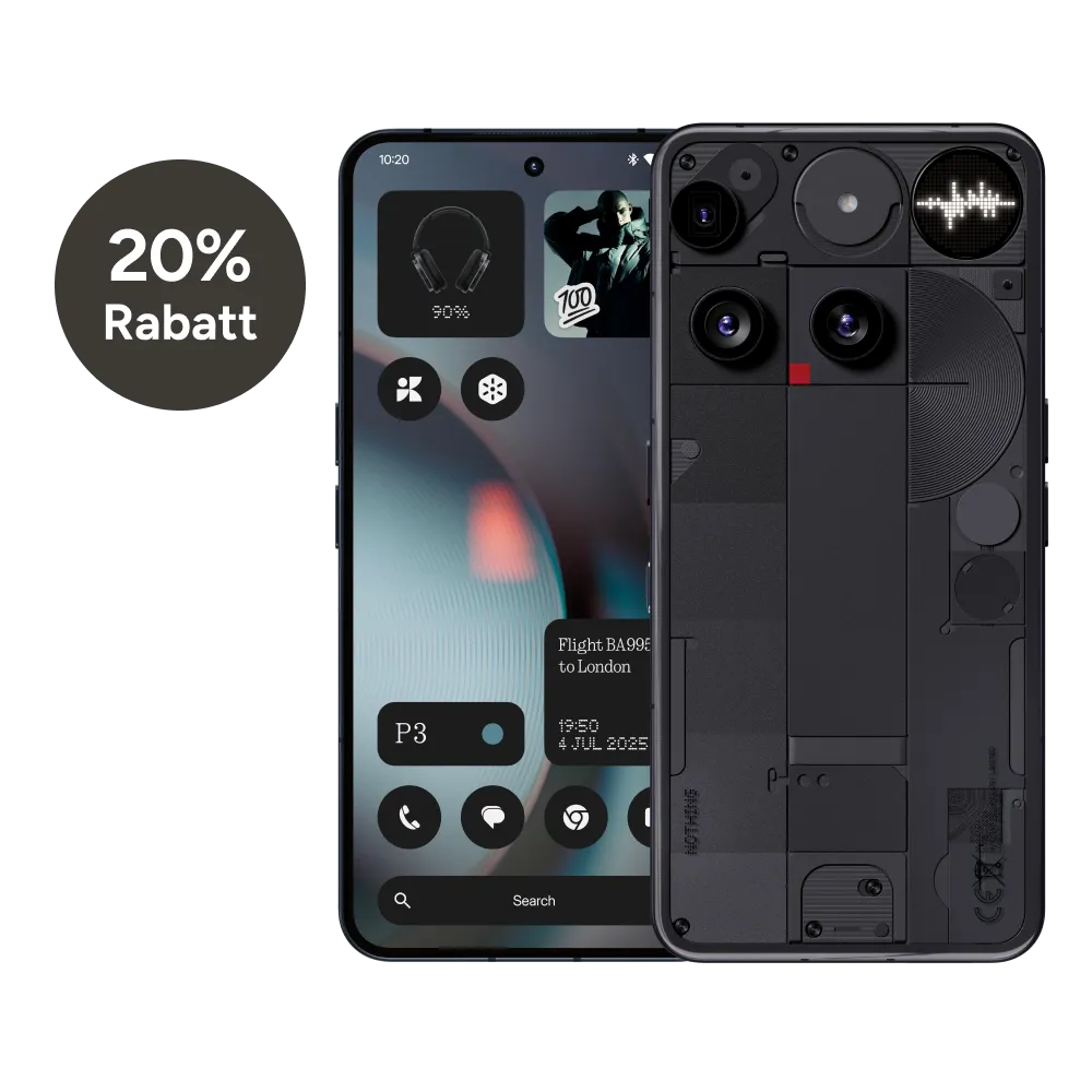 Nothing Phone 3 mit CHF 140.– Rabatt für CHF 559.– (statt CHF 699.–). CHF 1.– Anzahlung und 23 monatliche Raten à CHF 23.25, sowie eine letzte monatliche Rate à CHF 23.25. Ratenzahlung ohne Zinsen und Gebühren. Gültig solange Vorrat.