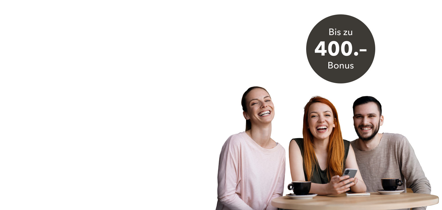 Willkommensbonus: Nach erfolgreicher Aktivierung erhältst du eine Rechnungs-Gutschrift von 400.–. Diese ist nicht übertragbar und wird nicht ausbezahlt.