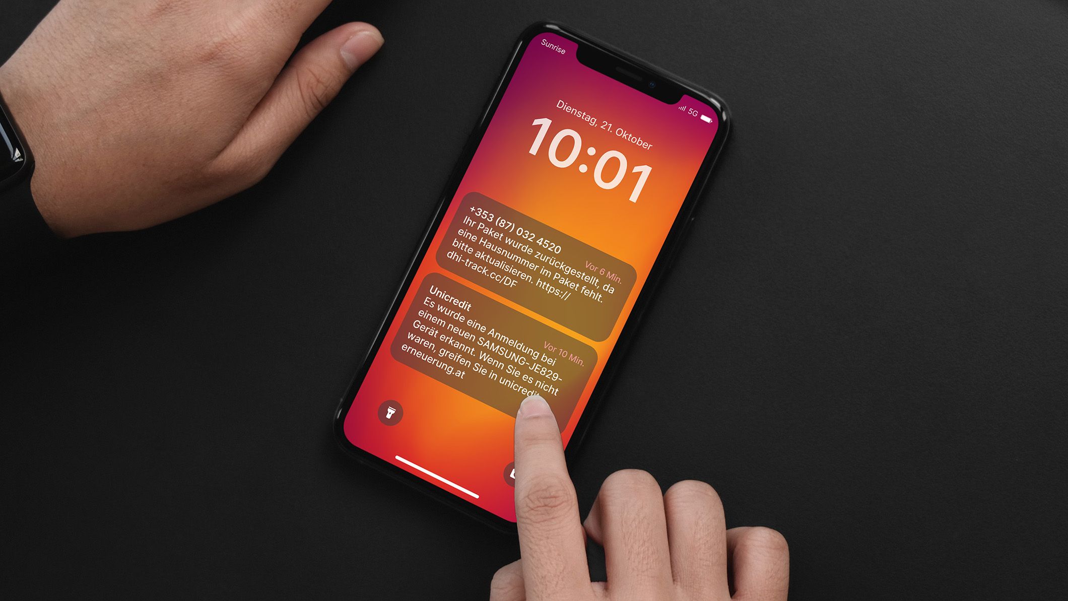 --> Check these kinds of requests by contacting the «friend» or the company mentioned in a different way. Don’t give the caller any of your personal details and never install software provided by callers or based on email requests – even if these may appear legitimate at first glance.SMS, WhatsApp and text fraud (smishing): Texts containing links and feigned urgency, such as «Only 1 unit left!» or «This offer will end in 5 minutes», may be fake. Never click on a link in SMS, WhatsApp messages or emails of this nature.