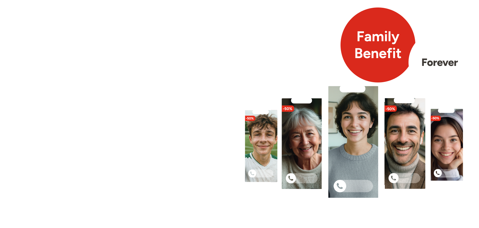 Get 50% off your second mobile subscription with our Family Benefit!