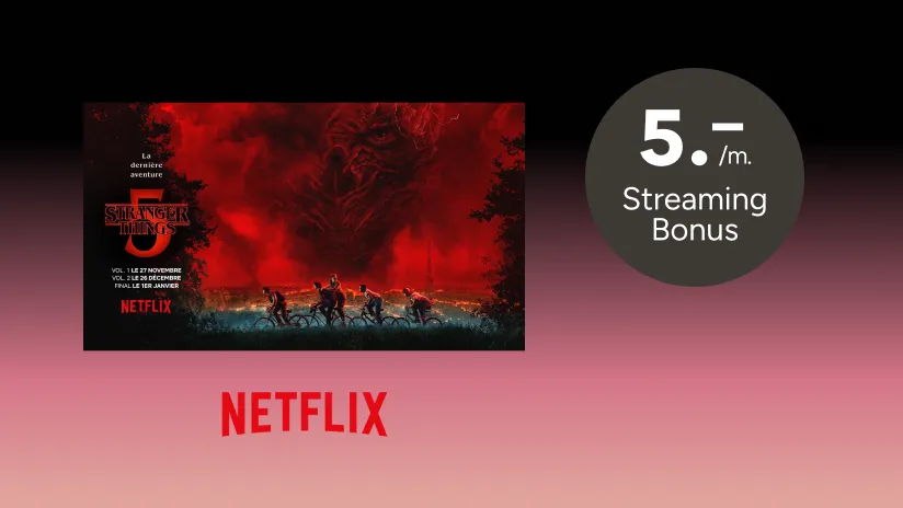Up Home L pour 49.90 au lieu de 101.70/m. et 5.–/m. Streaming Bonus sur Netflix jusqu'à 24 mois.