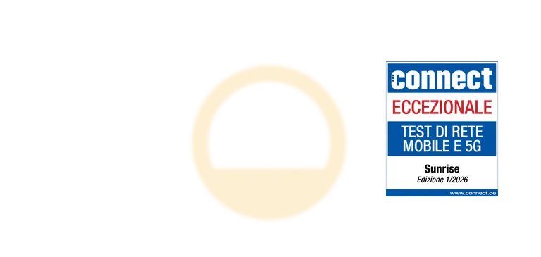 Sunrise ha ottenuto ancora una volta il rating «ECCEZIONALE» nel test della rete mobile 2025 connect e nel test della banda larga connect. Con Sunrise beneficiate di una telefonia mobile di alta qualità e di un'affidabilità leader per le connessioni dati mobili sulla più grande rete 5G della Svizzera, compreso il 5G Standalone, e di una rete fissa a banda larga che offre un'affidabilità comprovata e le velocità di download medie più elevate tra i provider nazionali.
