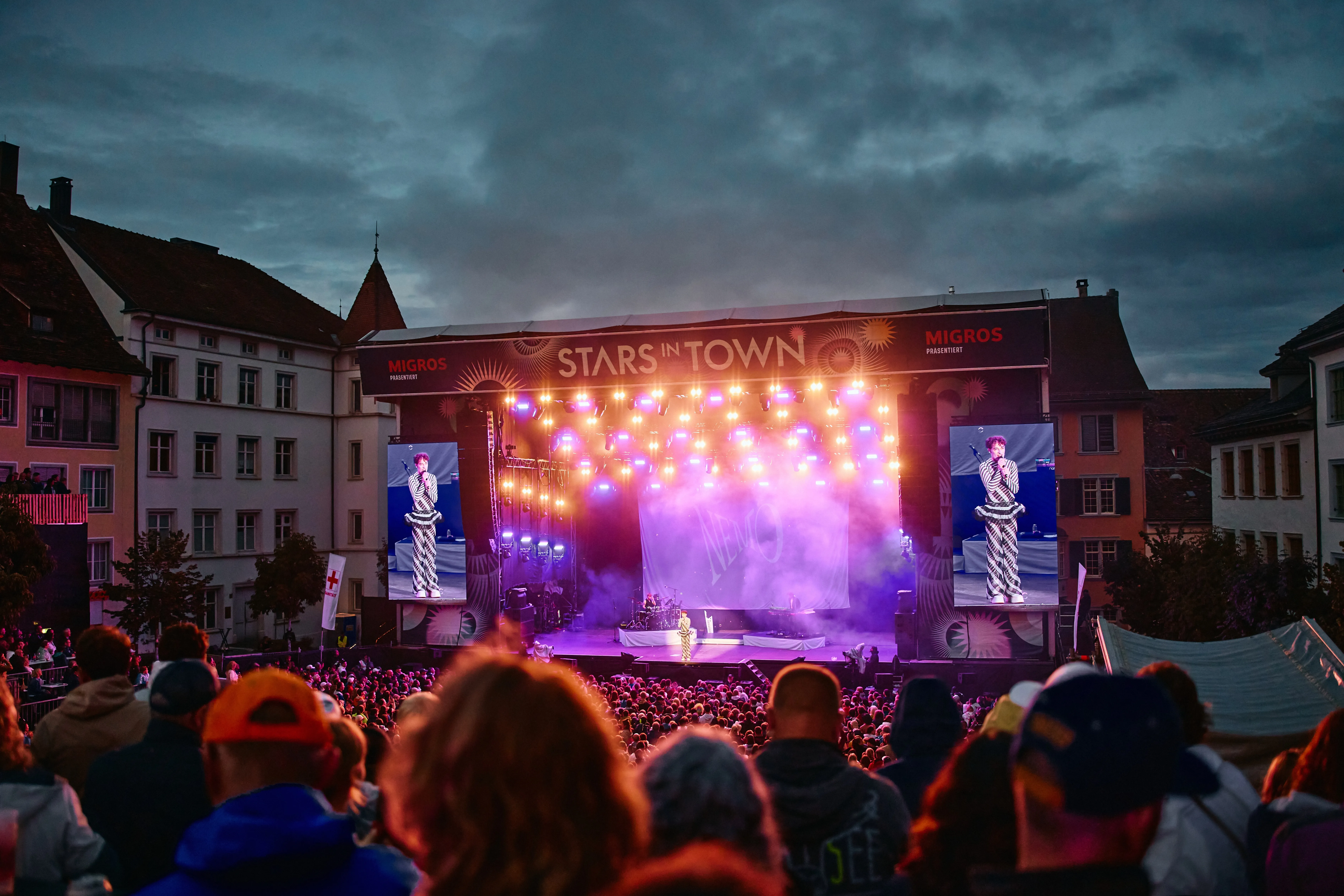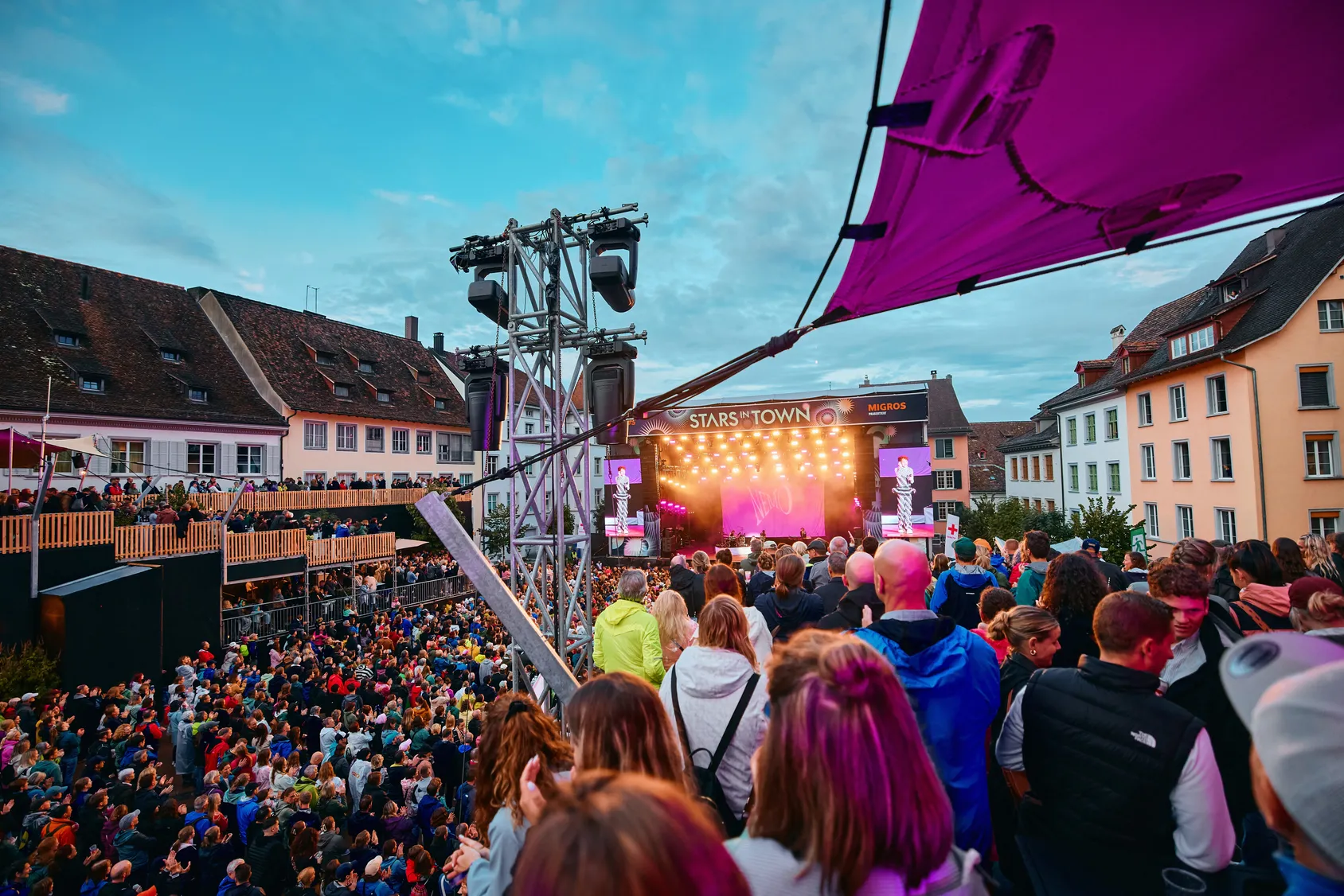 Stars in Town è considerato uno dei festival più belli e simpatici della Svizzera. Oltre 50.000 ospiti provenienti da vicino e da lontano assistono a magnifici concerti su diversi palchi nella Piazza Grande della Svizzera tedesca, nell'affascinante centro storico di Sciaffusa. Numerosi eventi collaterali, street food e bar accoglienti in un ambiente unico completano il variegato programma. La stampa nazionale ha elogiato il più grande festival dell'incity della Svizzera tedesca definendolo "organizzato in modo incantevole", "probabilmente il più bel festival della Svizzera" e "artisti di alto livello in un ambiente incomparabile". Le varie location degli eventi nel centro dell'idilliaca città vecchia di Sciaffusa sono allestite in modo splendido. Le pittoresche case della città vecchia, avvolte in colori vivaci, creano uno scenario perfetto. E gli oltre 700 entusiasti aiutanti, in qualità di padroni di casa professionisti, rendono la visita al festival un'esperienza piacevole a tutto tondo.